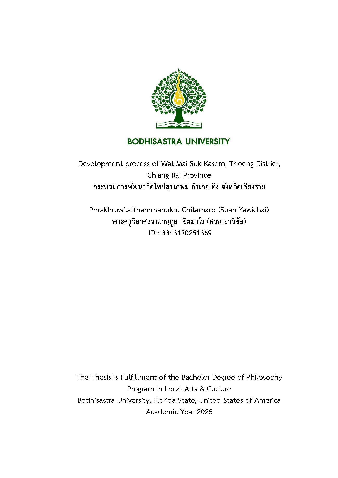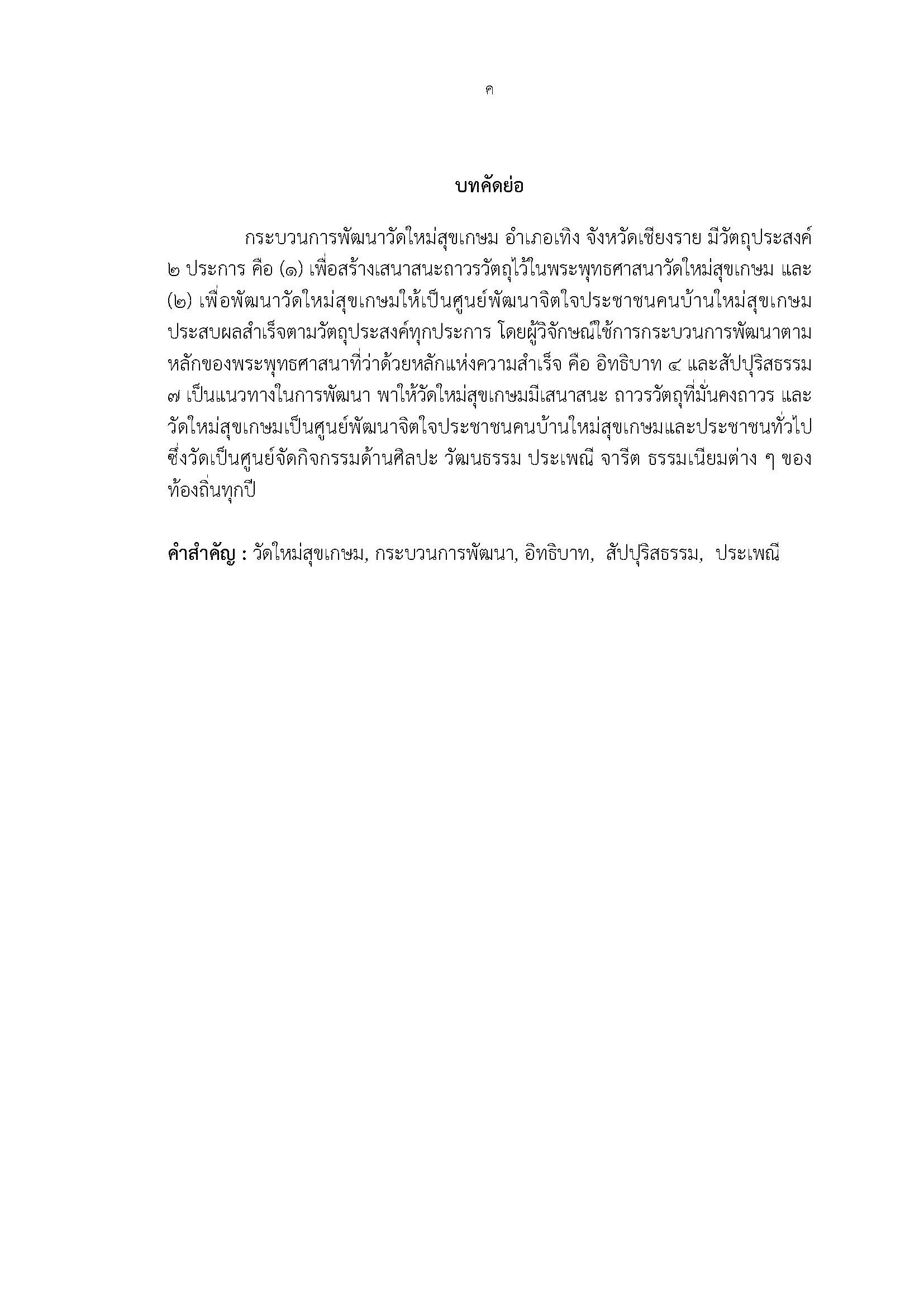 สารนิพนธ์เรื่อง กระบวนการพัฒนาวัดใหม่สุขเกษม อำเภอเทิง จังหวัดเชียงราย
